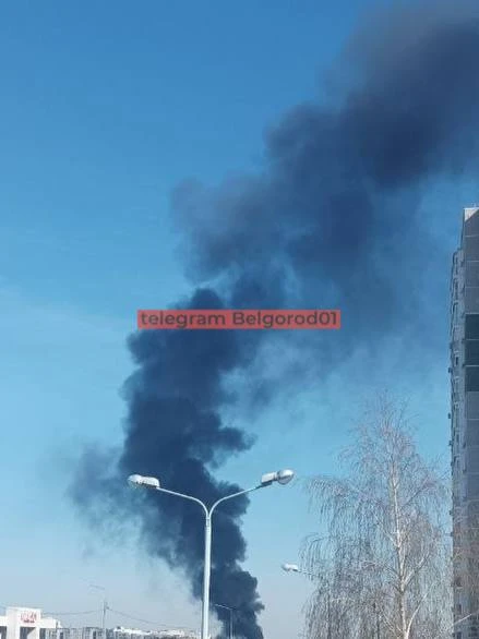 Первые фото поднимающегося дыма в Белгороде после атаки БПЛА.