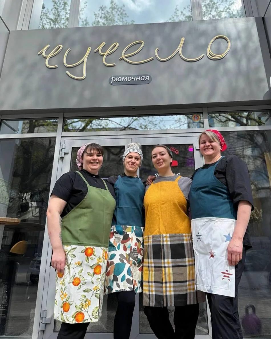 А ещё посмотрите, какие чудесные фартуки сшили подопечные фонда для сотрудников «Декабриста» и «Чучела».