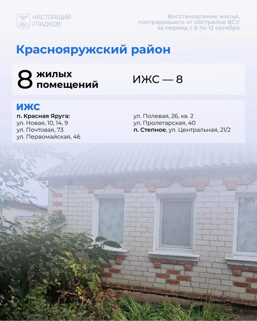 Размещаю список адресов, на которых, по докладу глав районов и округов, выполнены работы по восстановлению жилья.