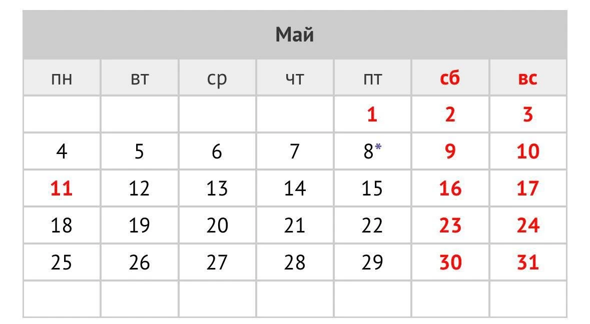📅 Россиян ждет всего 19 рабочих дней в мае этого года.