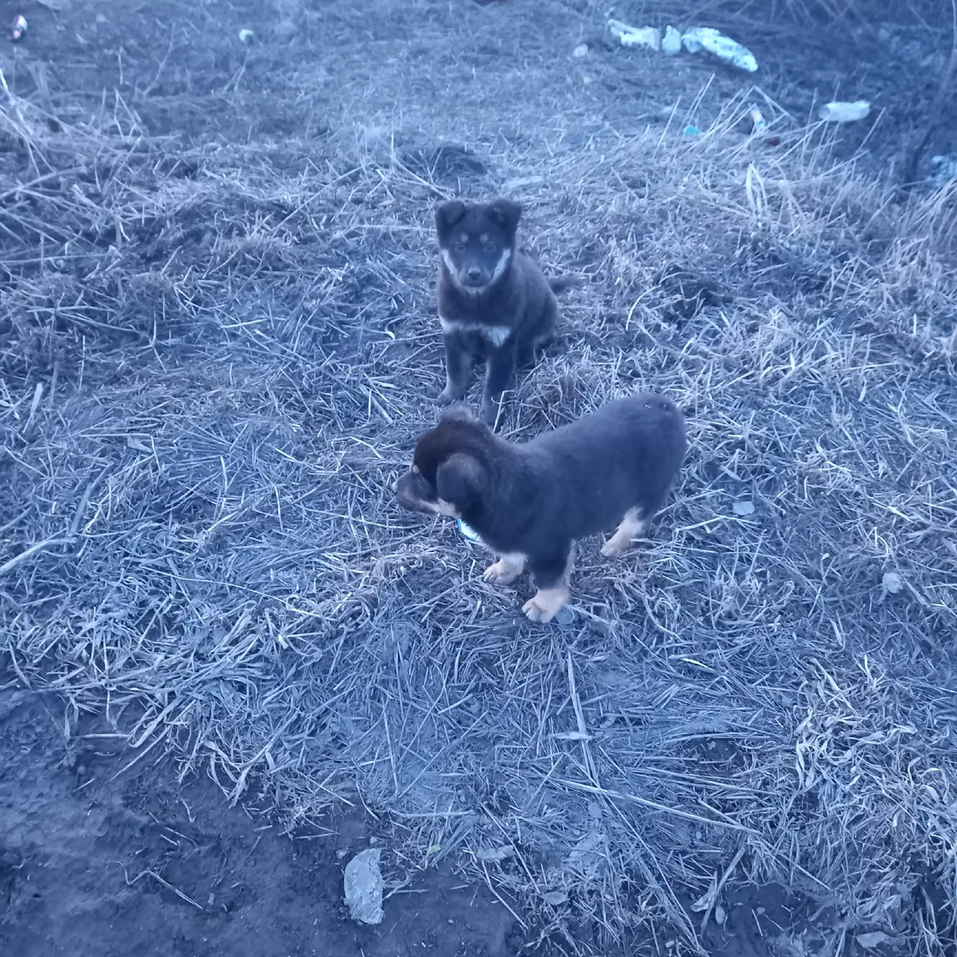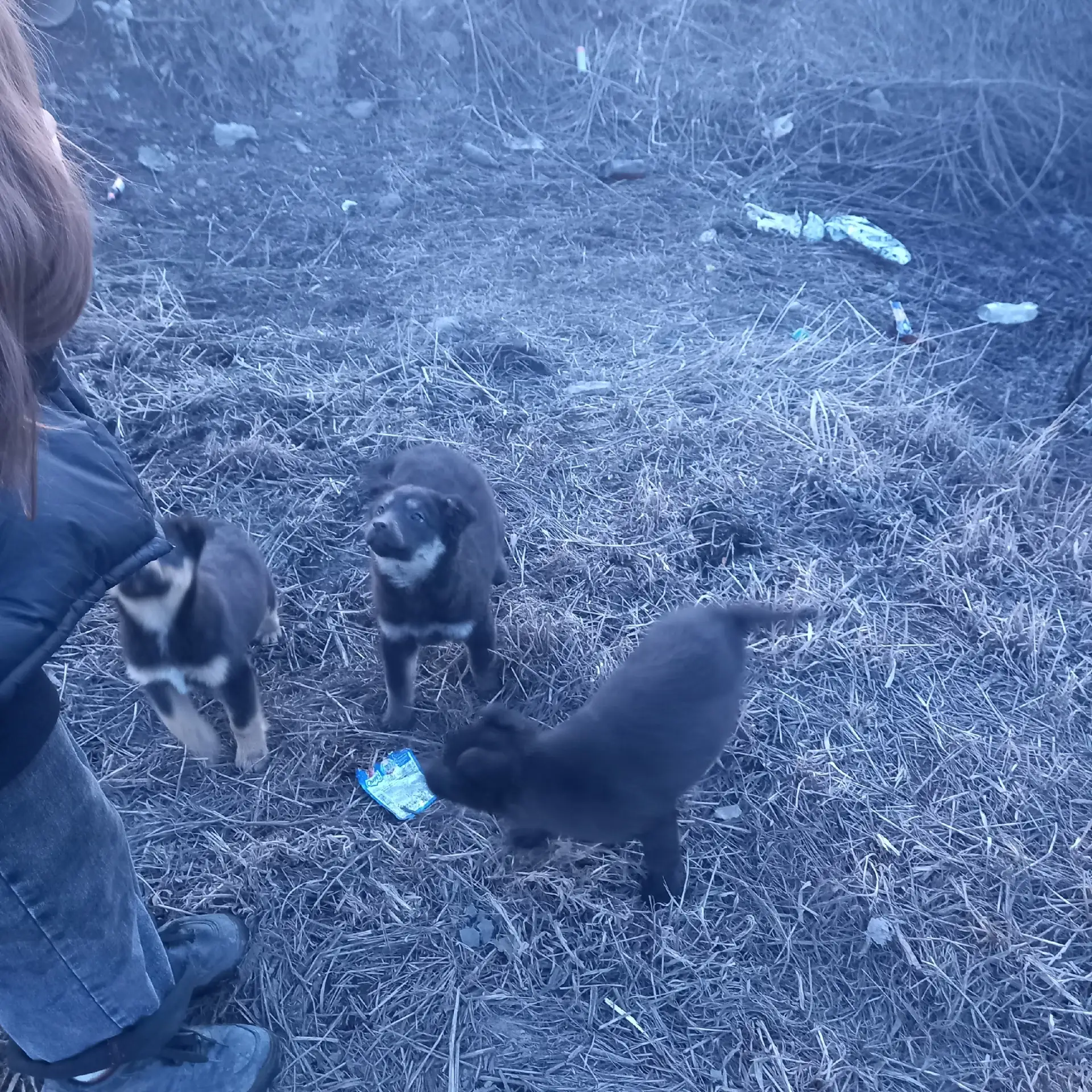 Здравствуйте!Подкинули щенков,район поворота ш.Западная.Тут ездят Камазы,Тонары и вахтовки в сторону речки.Себе забрать не могу,3 собаки имеются.Предварительно подкинули в прошлую ночь,т.к собаки всю ночь лаяли там.И там бегают взрослые собаки ,покалечат малышей.Игривые,ластятся.