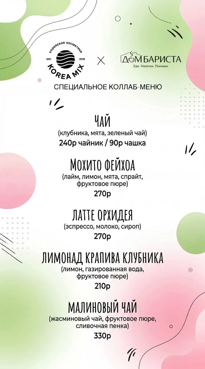 Решили сделать для вас что-то действительно необычное и очень вкусное — магазин корейской косметики «Korea Mix» запустил коллаборацию с кофейней «Дом Бариста» ☕✨