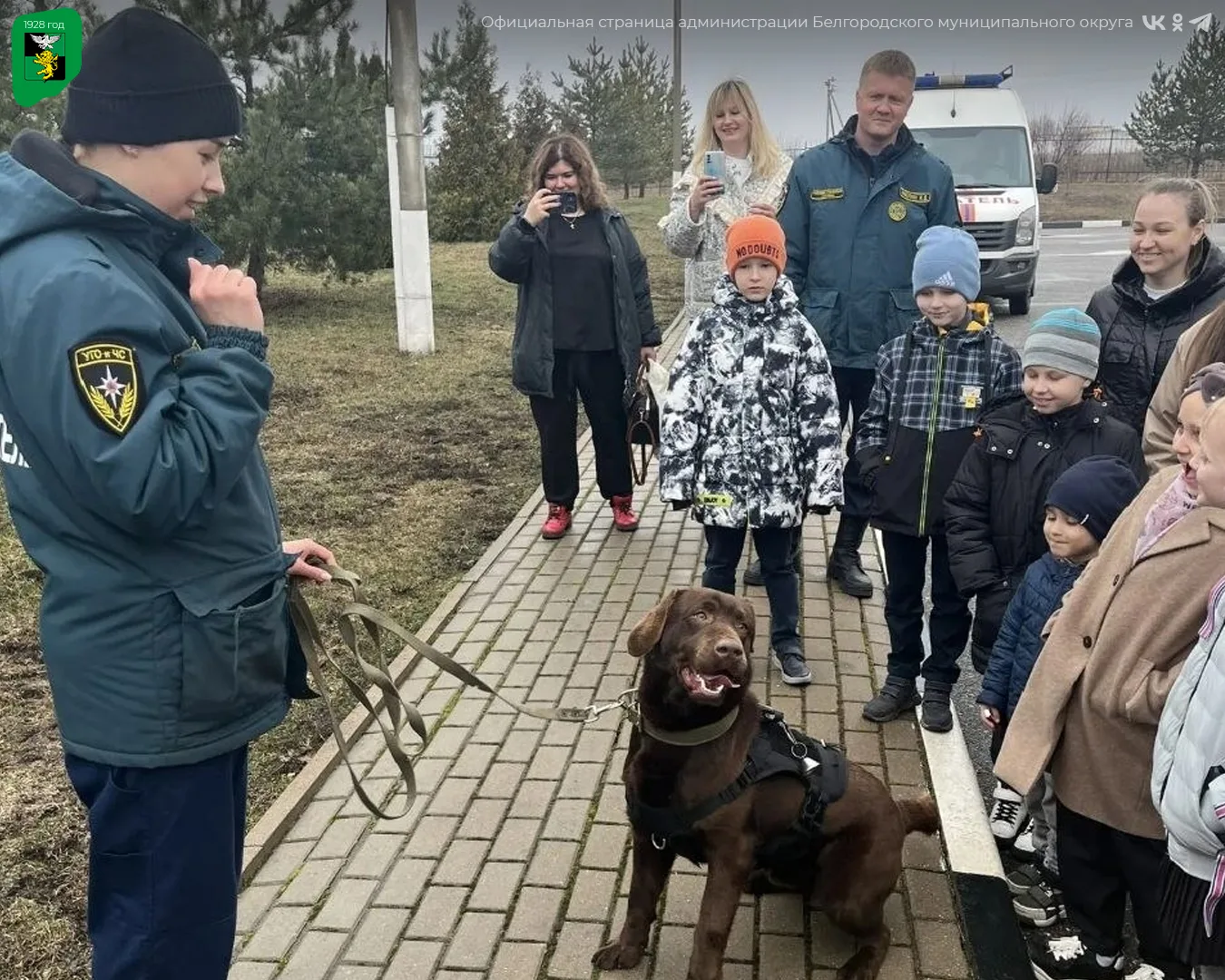 Особый интерес у детей вызвала возможность углубиться в работу кинолога, где они познакомились с хвостатым специалистом и верным помощником — минно-розыскным псом Реем.