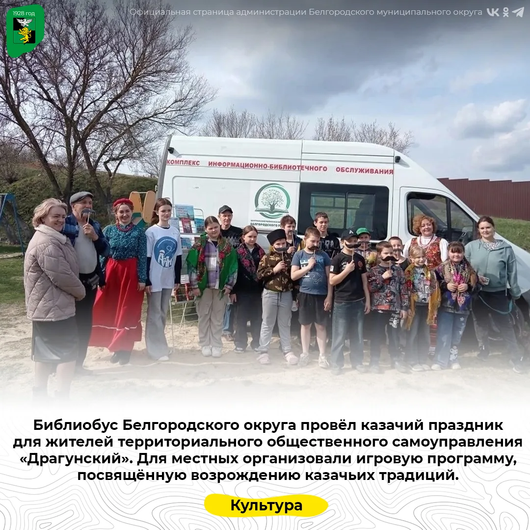 Библиобус Белгородского округа провёл казачий праздник для жителей территориального общественного самоуправления «Драгунский»