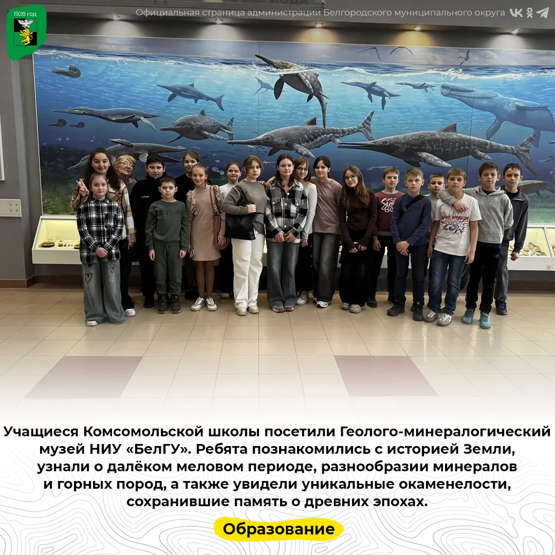 Ребята познакомились с историей Земли, узнали о далёком меловом периоде, разнообразии минералов и горных пород, а также увидели уникальные окаменелости, сохранившие память о древних эпохах.