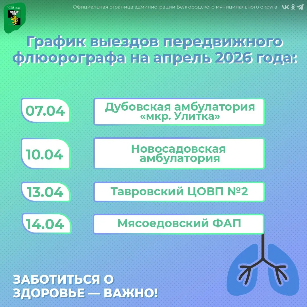 В апреле 2026 года наш передвижной флюорограф продолжит свою работу, делая диагностику доступнее для вас