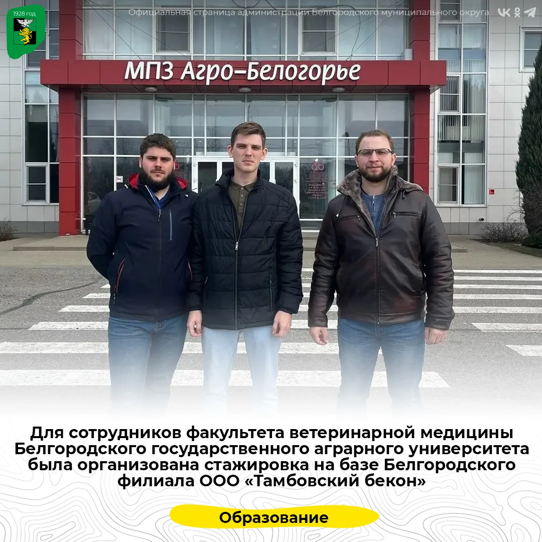 Для сотрудников факультета ветеринарной медицины Белгородского государственного аграрного университета была организована стажировка на базе Белгородского филиала ООО «Тамбовский бекон»