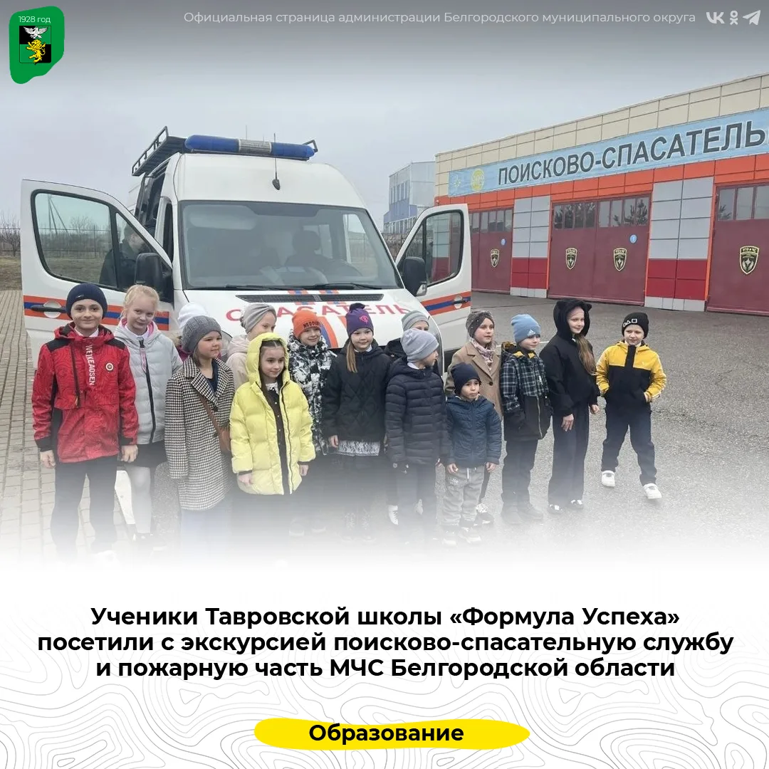 Ученики Тавровской школы «Формула Успеха» посетили с экскурсией поисково-спасательную службу и пожарную часть МЧС Белгородской области