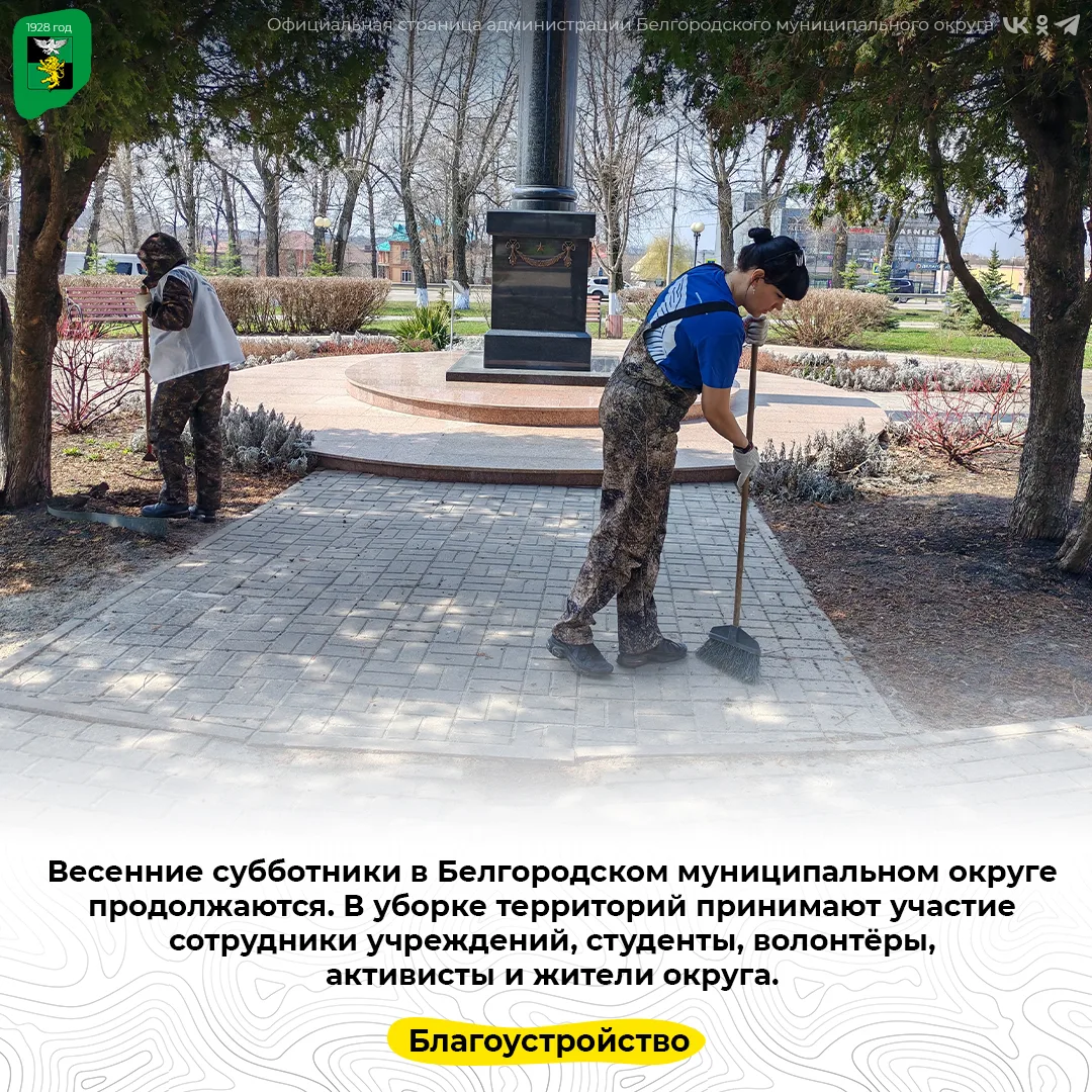 Весенние субботники в Белгородском муниципальном округе продолжаются