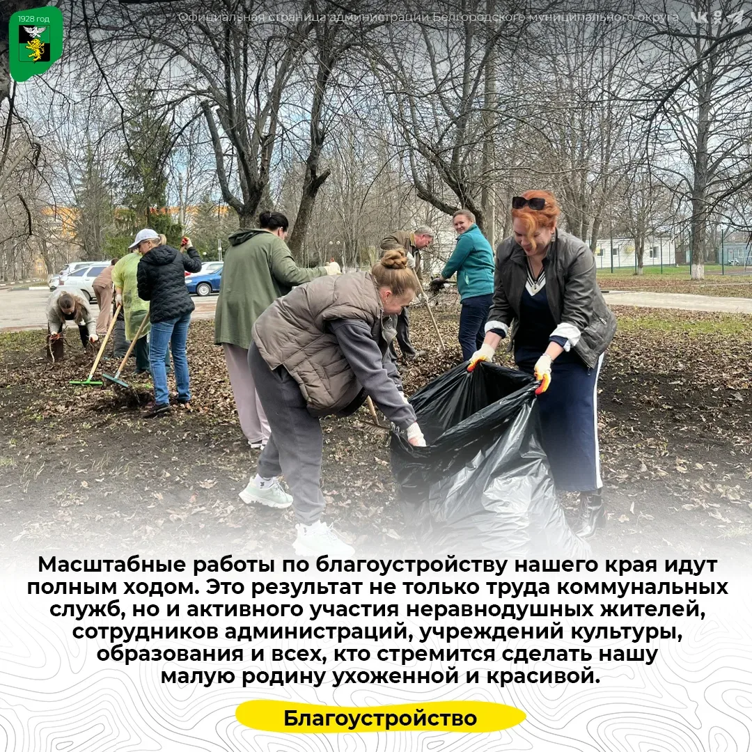 Уважаемые жители Белгородского муниципального округа! Погода радует нас теплом, поэтому призываю вас не оставаться в стороне и присоединяться к марафону чистоты на наших улицах. Вместе мы сможем больше!