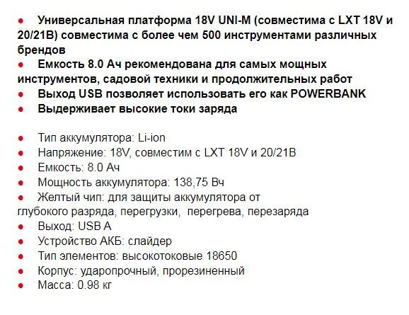Данные АКБ будут заряжаться оригинальной ЗУ makita, ЗУ Ставр а так-же ЗУ Зубр LMS!
