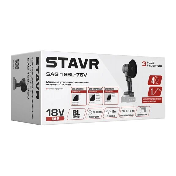 Машина углошлифовальная 76-105 мм, BL STAVR SAG 18BL-76V (без АКБ и ЗУ)