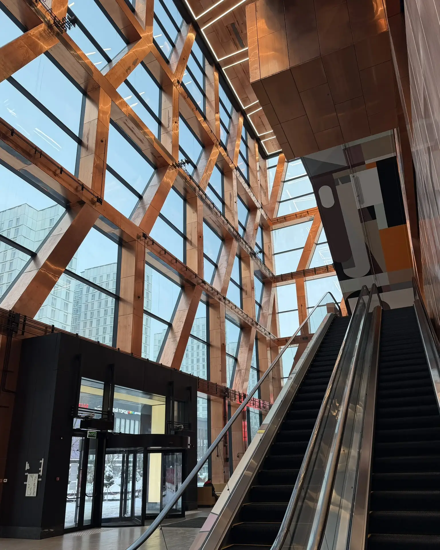 Внутри тоже всё продумано: есть детская игровая зона, концептуальный музейный магазин, эскалаторы на каждый этаж, которые в ручную расписанные художниками. И, конечно, сама архитектура - стекло, медь, детали, на которые залипаешь.