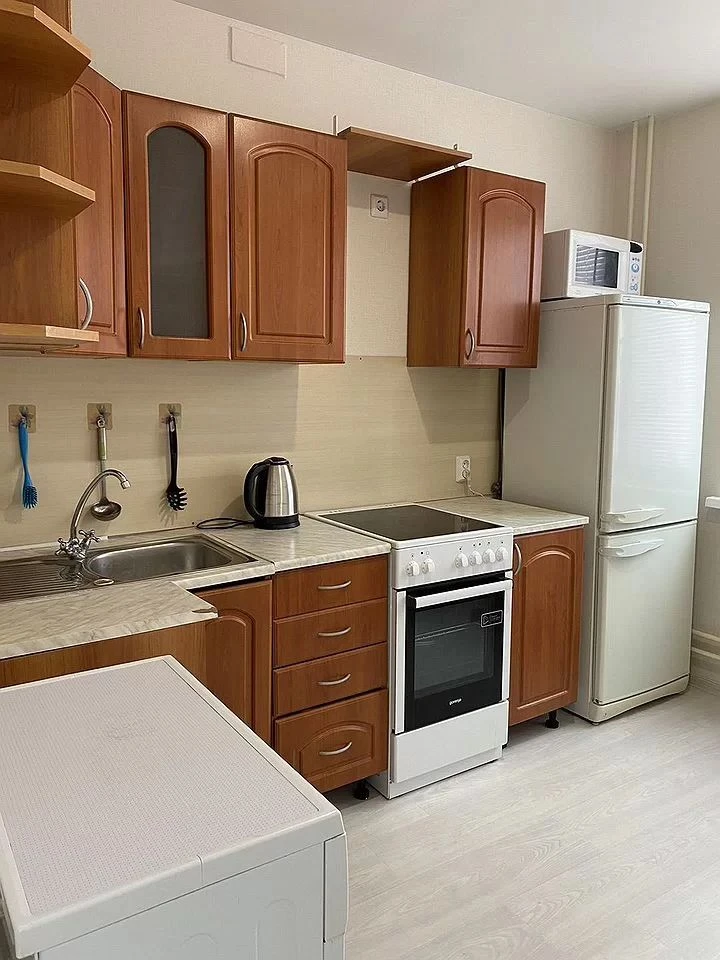 Однокомнатная квартира, косметический ремнот. Есть кухонный гарнитур, холодильник, телевизор, 2 спальных места. Для русской семьи.
