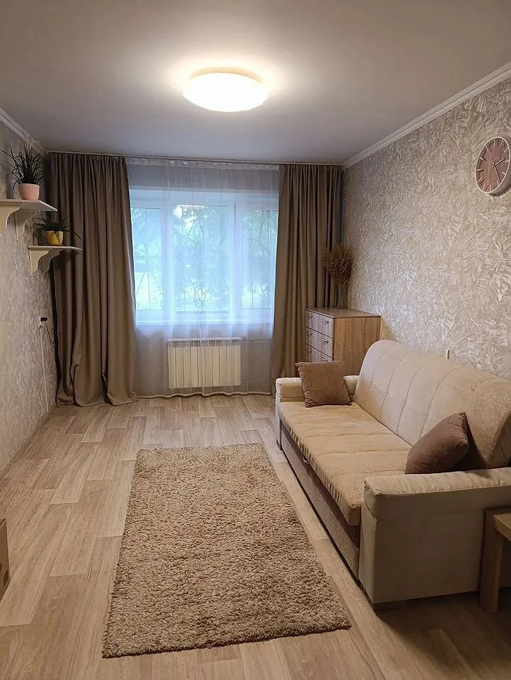 Сдам однокомнатную квартиру. В квартире есть вся необходимая для проживания мебель и техника. В шаговой доступности магазины, школы, детские сады, автобусная остановка.