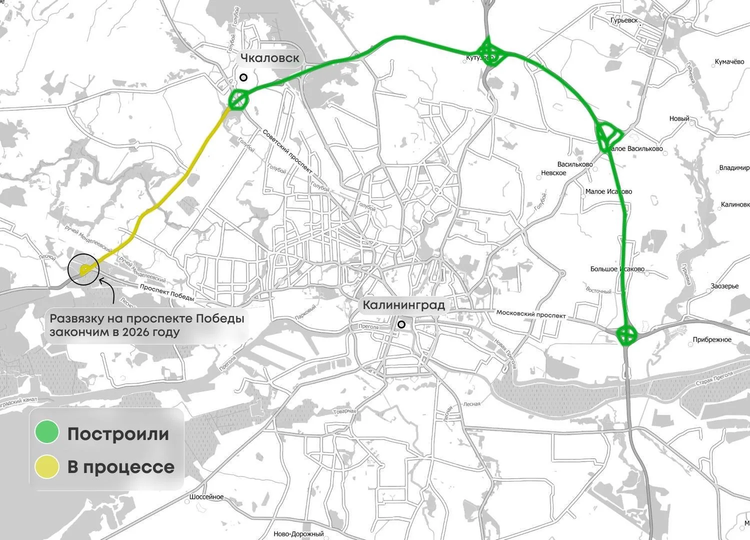 ▫️ Про крупный проект. До конца года завершим строительство транспортной развязки в районе проспекта Победы. Техническая готовность уже приблизилась к 73%. А к концу 2027 года планируем построить третий подэтап Северного обхода. Участок трассы соединит две транспортные развязки – на Советском проспекте и проспекте Победы.