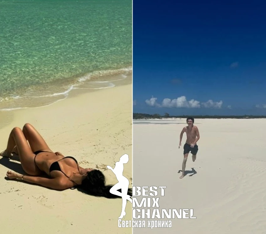 Кайли Дженнер и Тимоти Шаламе проводят отпуск на тропическом курорте. Кайли в бикини, Тимоти в плавках.