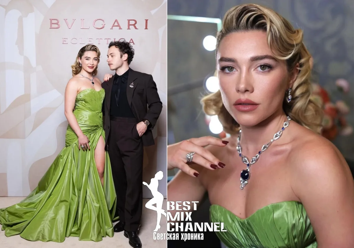 ФЛОРЕНС ПЬЮ ВПЕРВЫЕ ВЫШЛА В СВЕТ С ВОЗЛЮБЛЕННЫМ: зелёное платье Elie Saab и сапфиры Bvlgari в Милане 💚