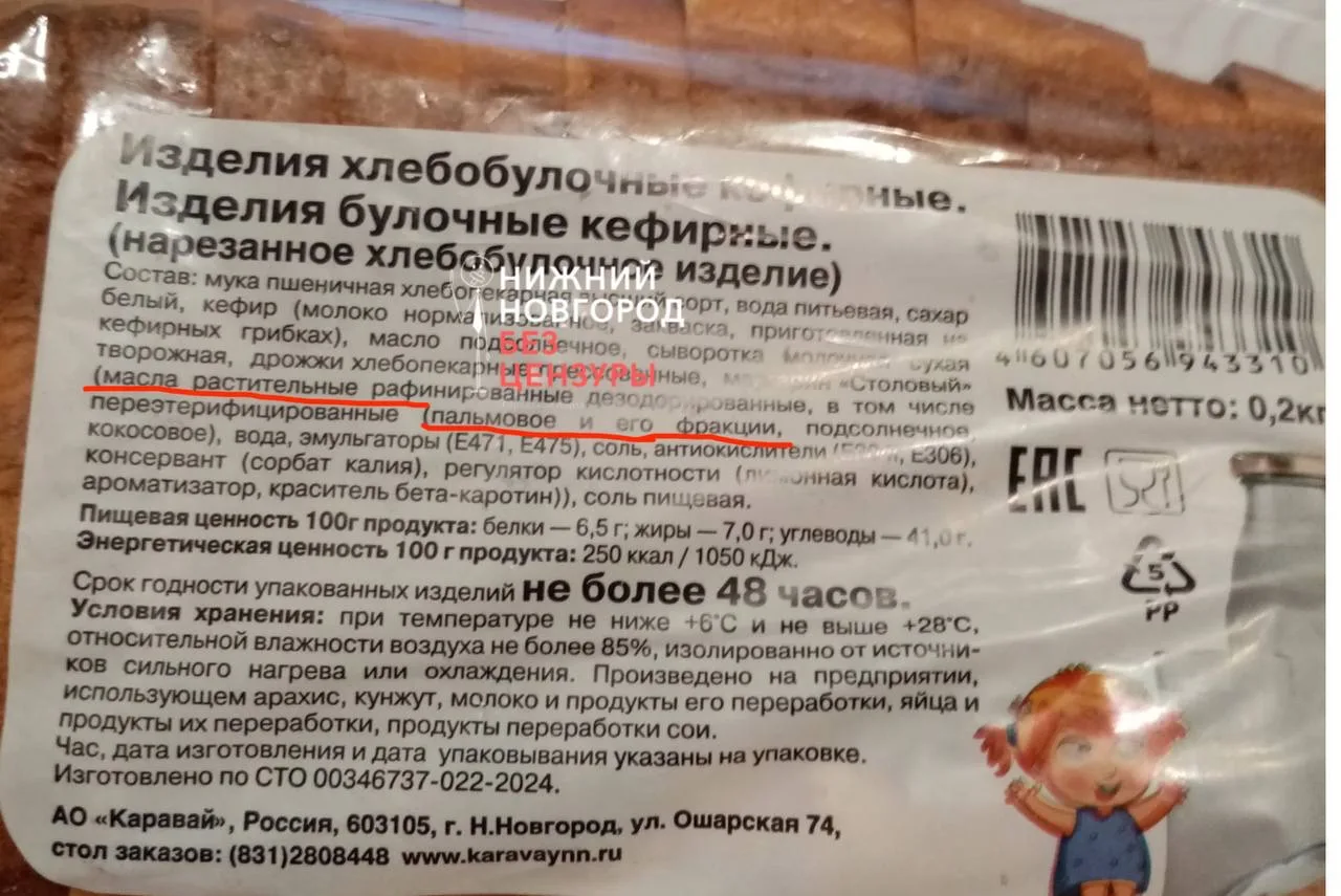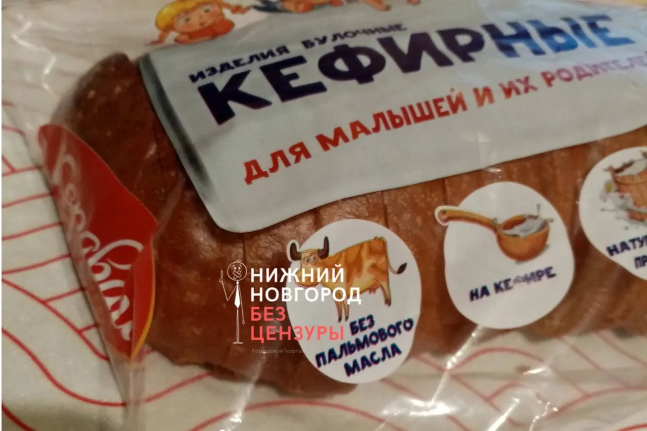 На упаковке хлебобулочного изделия «Кефирные, для малышей и их родителей» крупно указано: «Без пальмового масла». Надпись выделена и бросается в глаза.