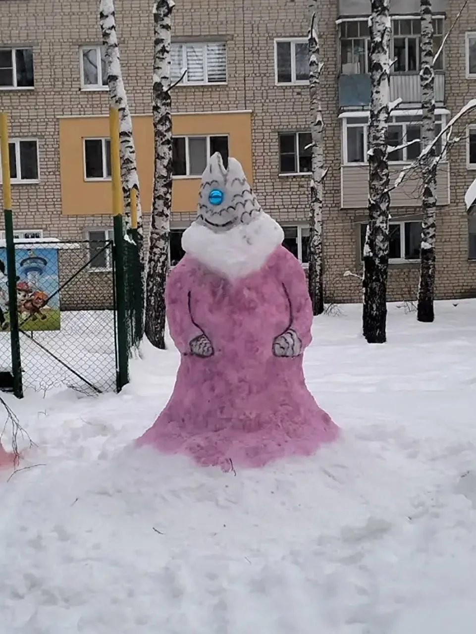 🐟 Необычный снеговик в виде селедки под шубой появился на площади в Арзамасе