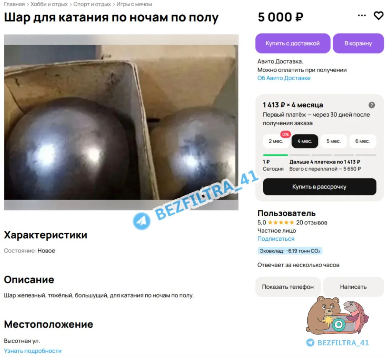 😆 На Авито на Камче продают шары для катания по ночам по полу.