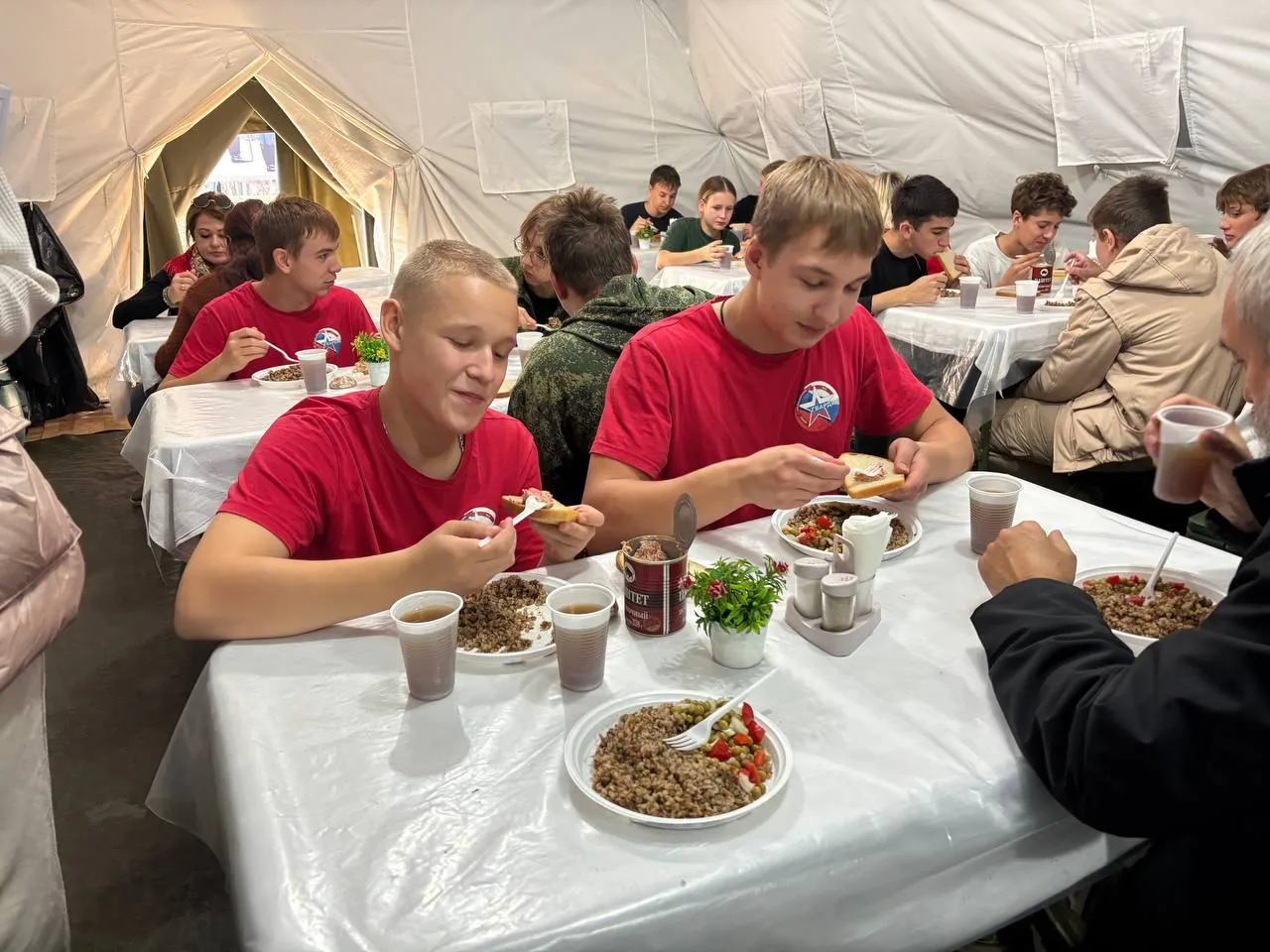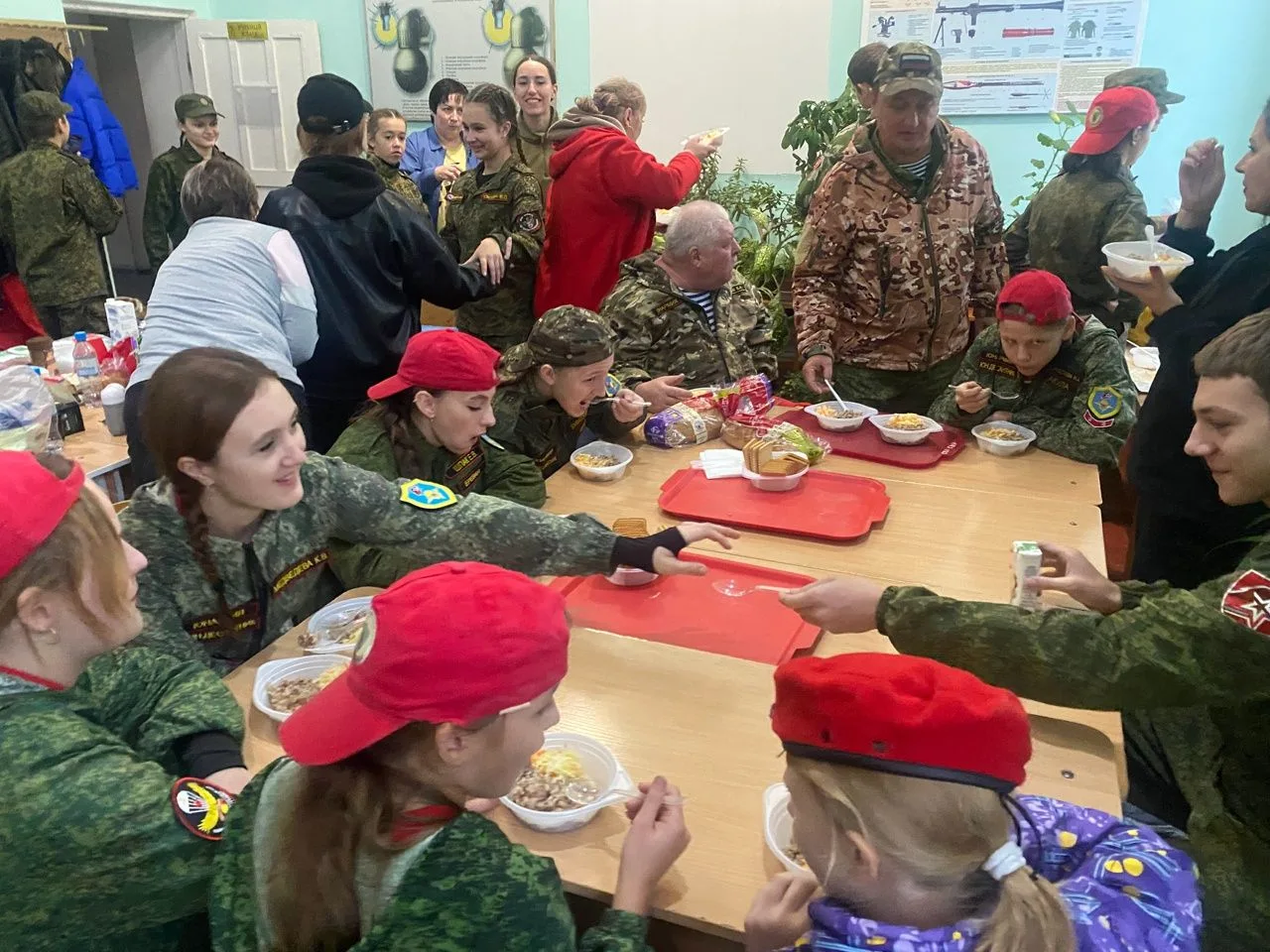 По окончанию соревнований участники посетили столовую, где военнослужащие рассказали им о порядке приготовления пищи в армии и накормили вкусной солдатской кашей.