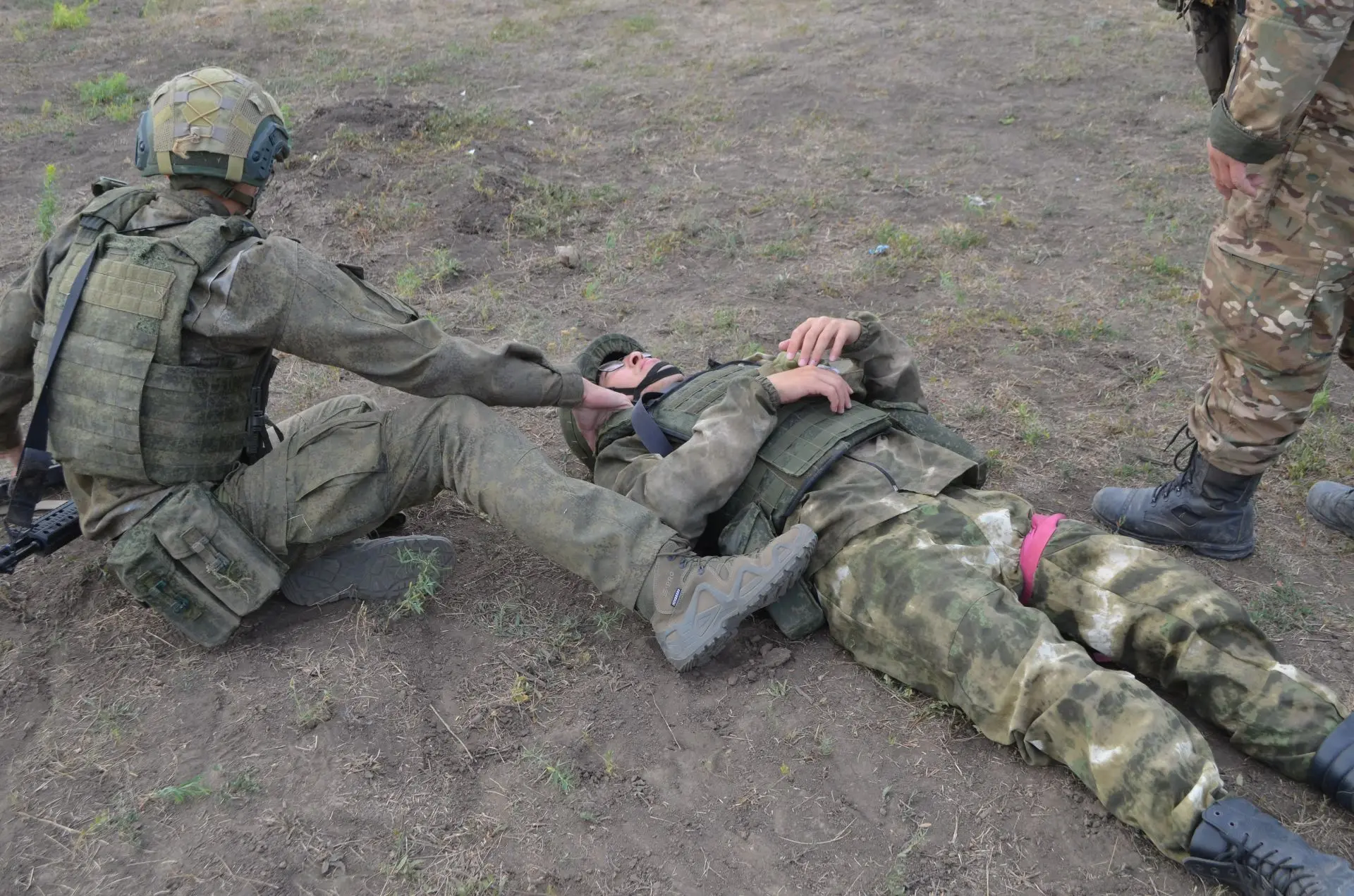 Военнослужащие, заключившие первый контракт с Минобороны России, прошли курс обучения по тактической медицине на полигоне ЮВО