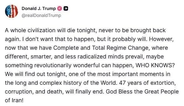 Президент США Дональд Трамп заявил накануне, что США могут «уничтожить» Иран полностью в ночь со вторника на среду, если до этого момента Тегеран не разблокирует Ормузский пролив.