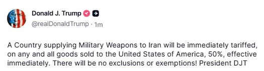США введут 50% пошлины для стран, поставляющих оружие Ирану — Трамп