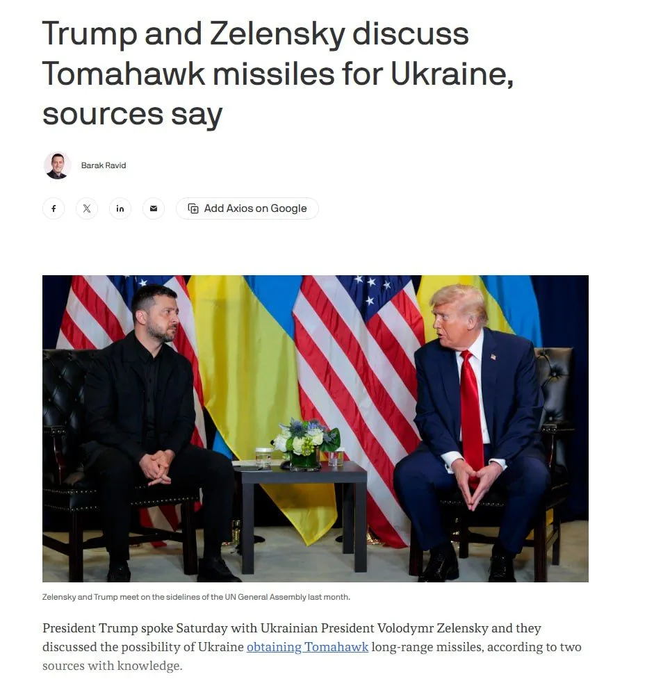 По словам самого Зеленского, в разговоре они снова затронули тему возможных поставок Украине ракет Tomahawk.
