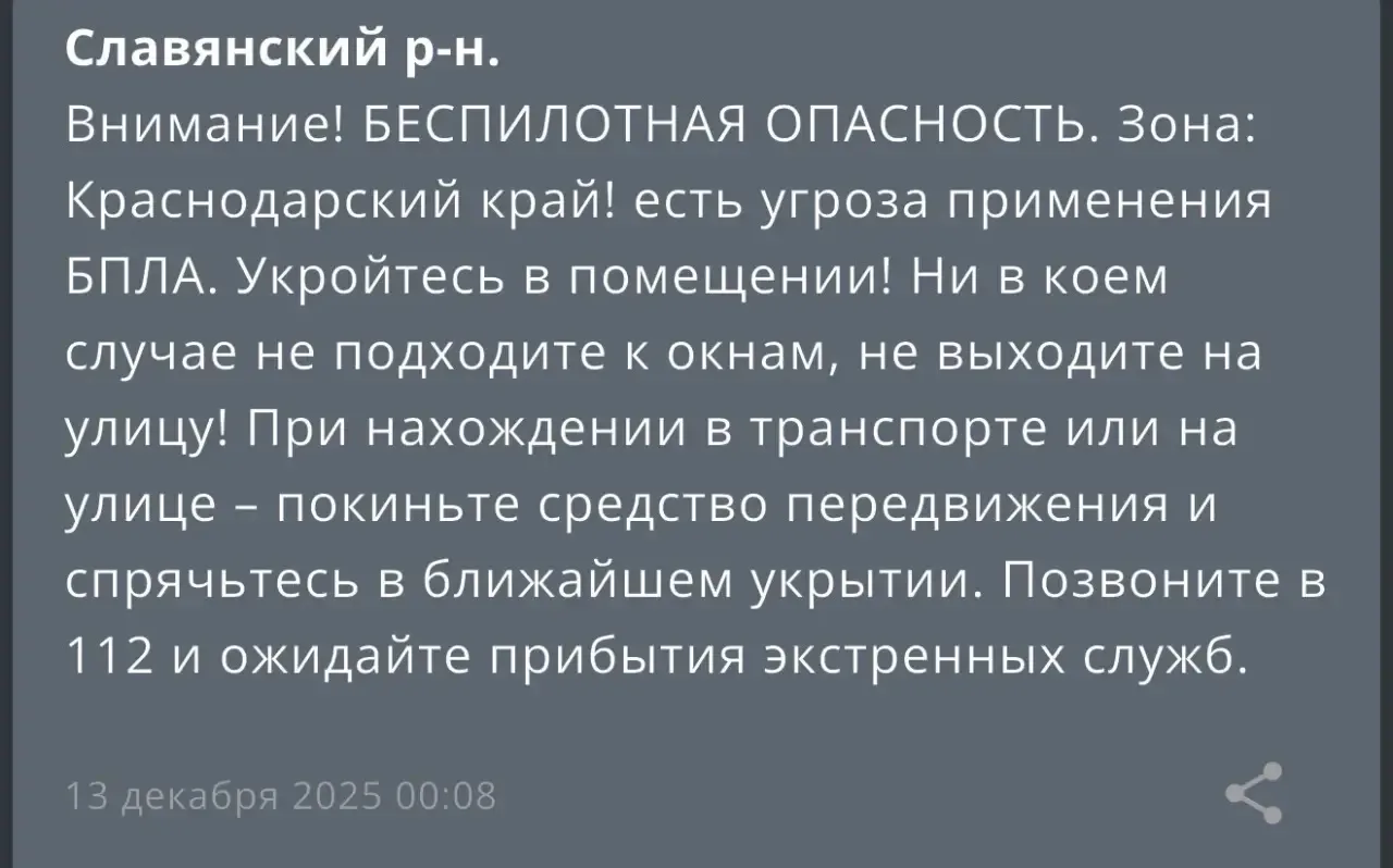 Славянск-на-Кубани и близлежащие, тревога по БпЛА