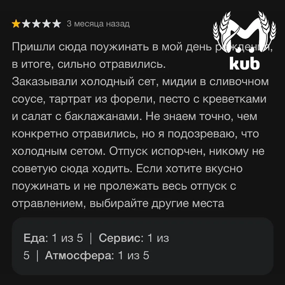 Ресторан Мидийное место в Сочи закрыли из-за отравления гостей на 10 дней. Снова.