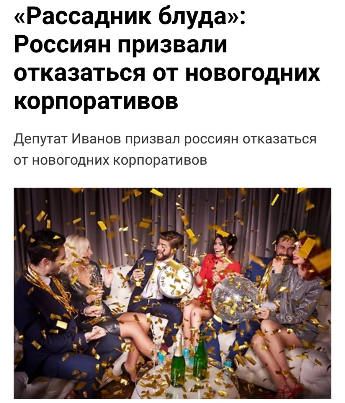 Людям следует избегать шумных корпоративов, поскольку такие мероприятия стали рассадником блуда и непристойного поведения, заявил депутат Михаил Иванов.