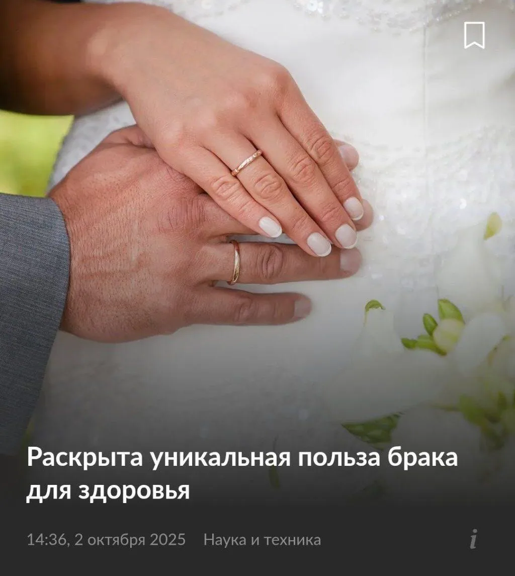 Как показало исследование 5 тысяч человек, у женатых на 50% ниже риск смерти от сердечных болезней и меньше психологических расстройств. Всё дело в постоянной взаимной поддержке и регулярной интимной близости.
