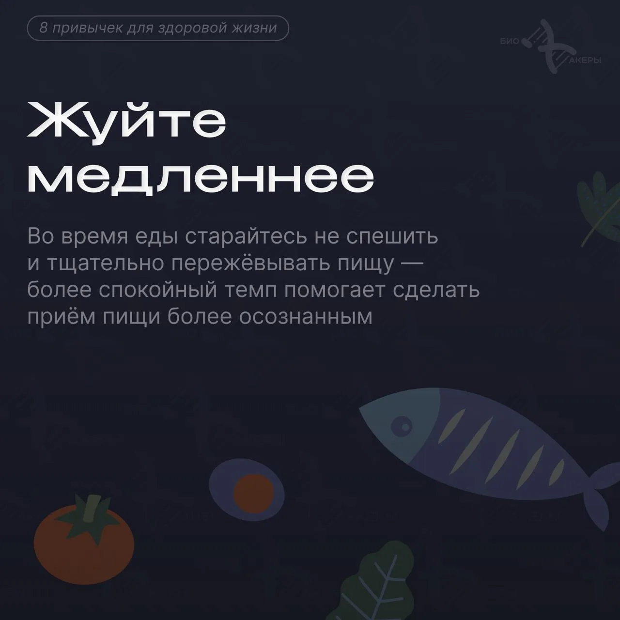 Жевание тоже важно: чем медленнее мы едим и чем лучше пережёвываем пищу, тем быстрее приходит сытость и ниже шанс переесть.