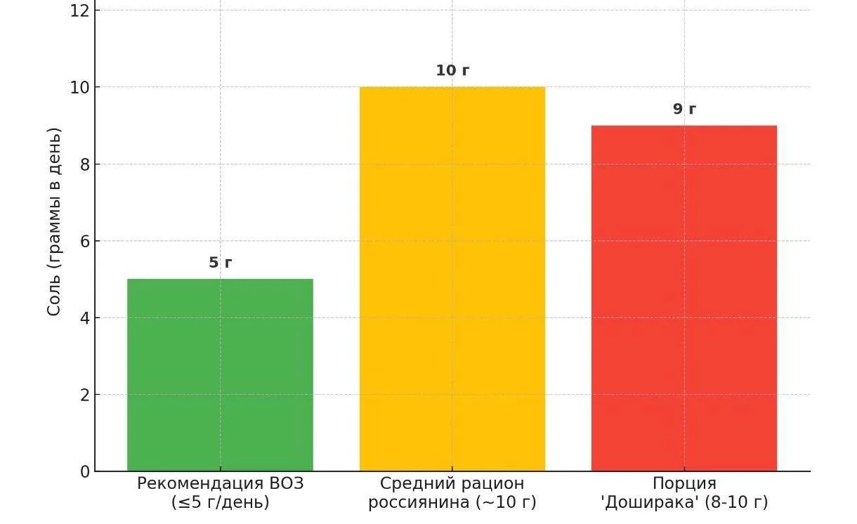 В одной пачке «Доширака» и «Ролтона» — до двух суточных норм соли, трансжиры и куча добавок.