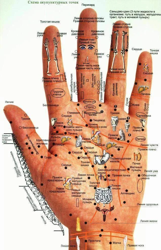 Ладонь буквально усеяна точками, связанными с внутренними органами, стимулируя эти зоны, можно избавиться от головной боли, усталости, проблем с пищеварением и давлением.