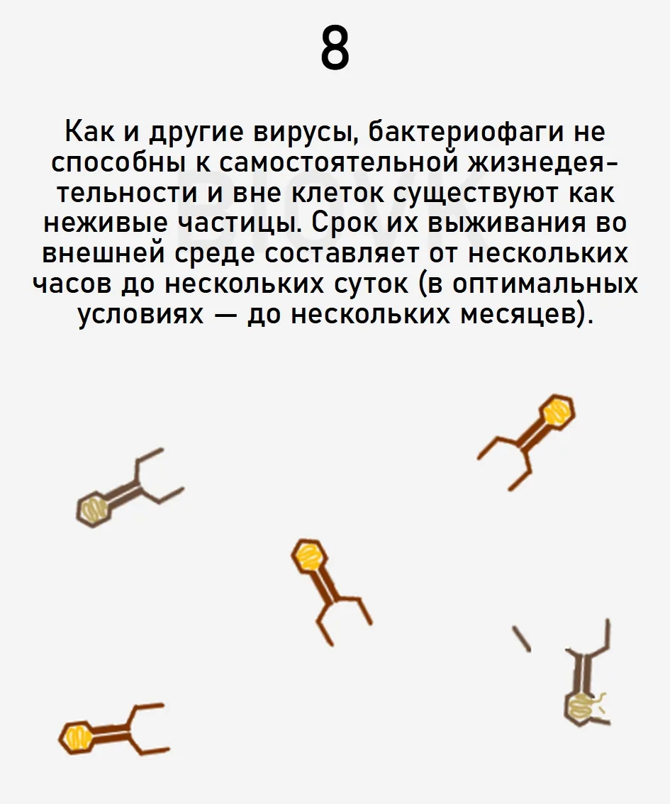 Принято считать, что все вирусы — вредные организмы. Однако среди них есть и паразиты бактерий, которые помогают в борьбе с разными бактериальными инфекциями. Как они это делают — описано в данной подборке. Конечно, на самом деле всё сложнее: к примеру, многие бактериофаги собраны на основе не ДНК, а РНК, и, соответственно, их цикл немного другой. А ещё их нуклеиновые кислоты могут внедряться в бактериальную ДНК и некоторое время в ней «спать», в то время как бактерия-хозяин беззаботно радуется жизни и размножается вместе с чужеродным генетическим кодом, плодя будущих смертников... В общем, у них всё сложно и интересно. #биология #инфографика #вирусология #школьникам