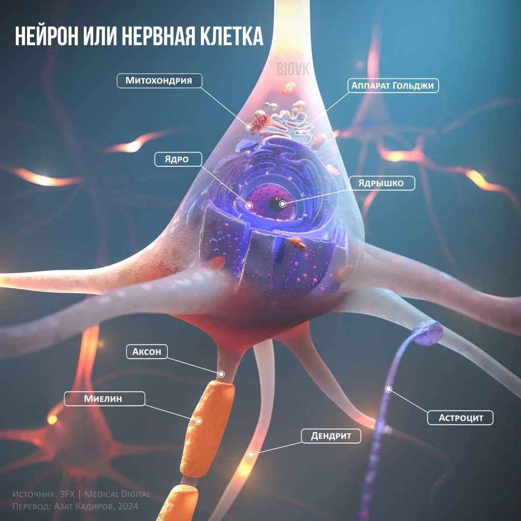 Нейрон — это клетка нервной системы, которая отвечает за передачу информации и связь с другими клетками. Самое яркое свойство нейрона — способность генерировать и передавать возбуждение (нервный импульс). Нейроны работают вместе, чтобы помочь нам мыслить, чувствовать и функционировать. #схемы #гистология #биология