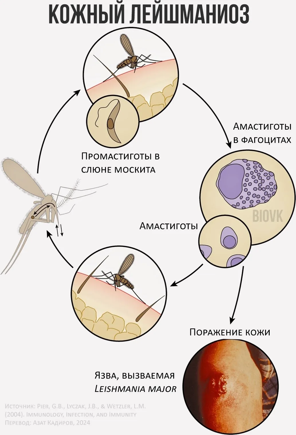 Лейшманиоз — это инфекционное заболевание, вызванное простейшими паразитами рода #Leishmania, которые передаются при укусах инфицированных москитов (Phlebotomus).