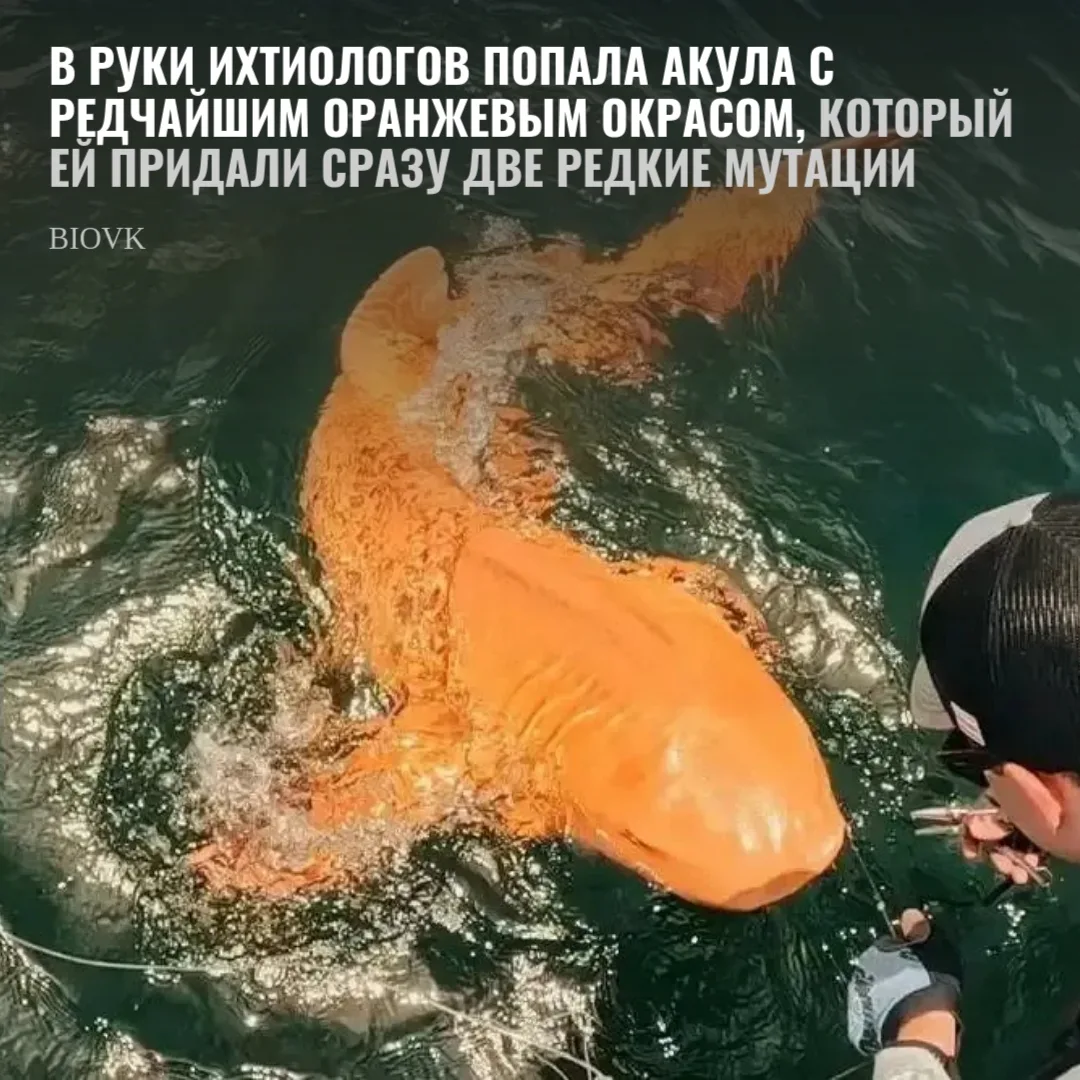 Морские биологи, изучившие фотографии, диагностировали у акулы редчайшую двойную аномалию — альбино-ксантохромизм. Это сочетание двух генетических «поломок»: