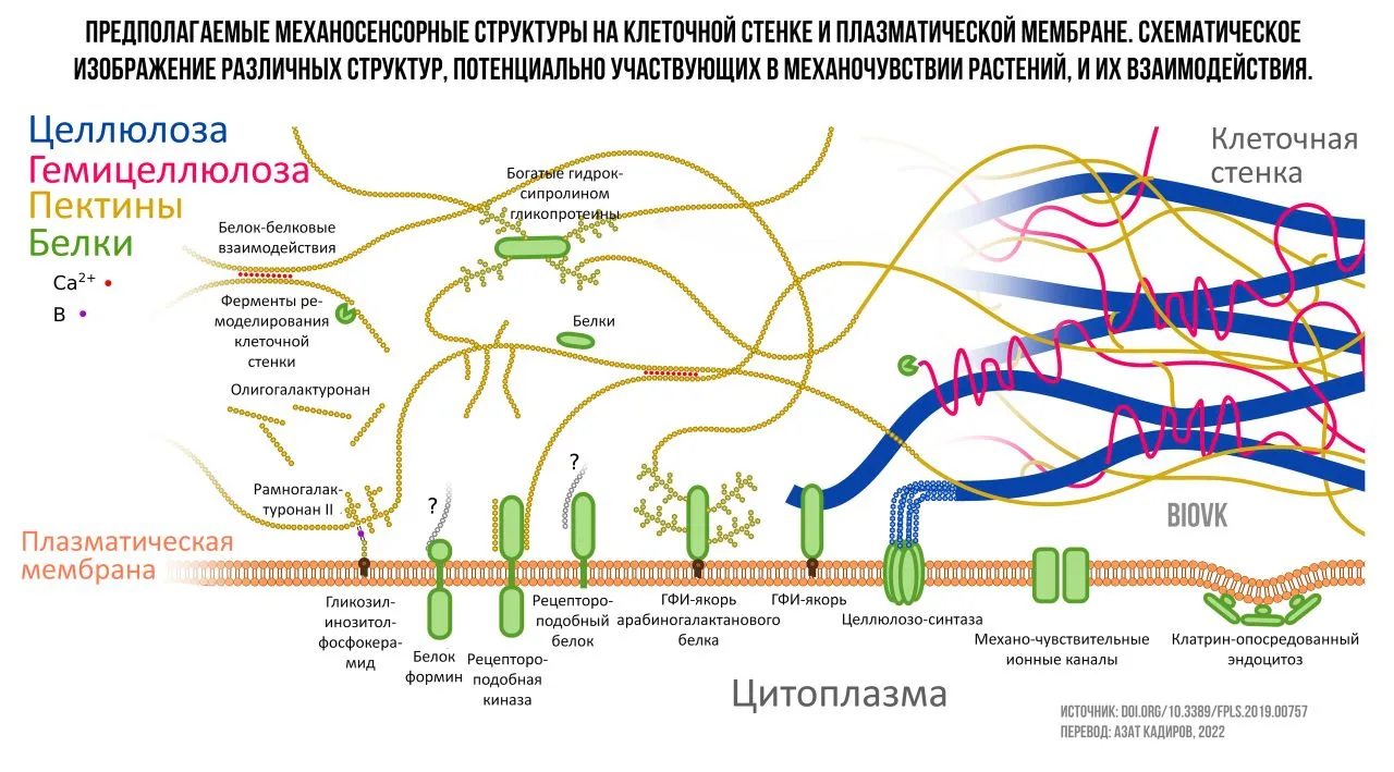 Клетки растений способны к механичувствительности, то есть к восприятию механических сигналов, таких как давление или растяжение. Механические сигналы участвуют в морфогенезе растений, в частности влияют на организацию цитоскелета, экспрессию генов, полярность и деление клеток. #биология #инфографика #цитология