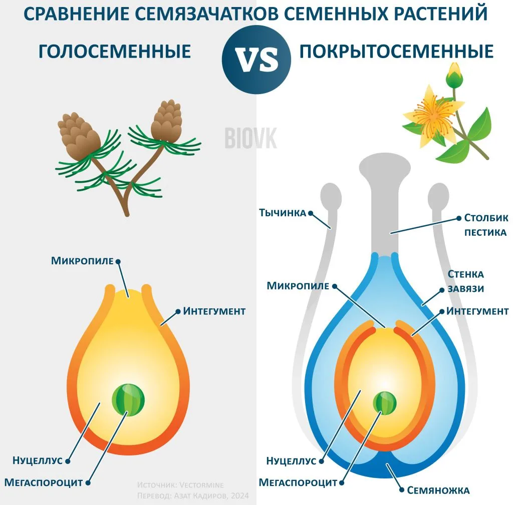 Интегумент — часть семяпочки, окружающая нуцеллус — центральную часть семязачатка растений. Интересно заметить, что интегумент не всегда бывает один, например, у всех однодольных их два. После оплодотворения он превращается в семенную кожуру. #биология #ботаника #схемы