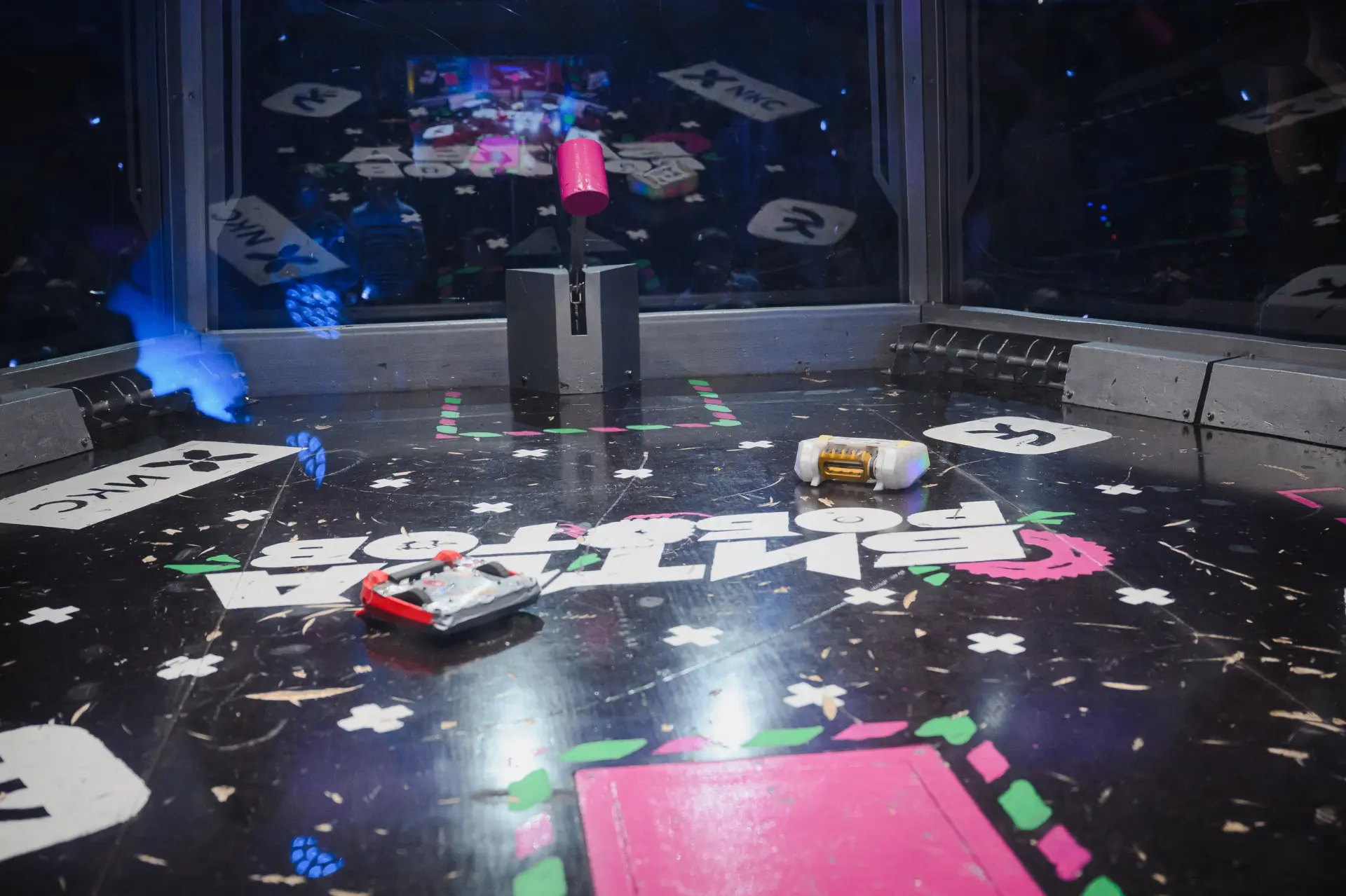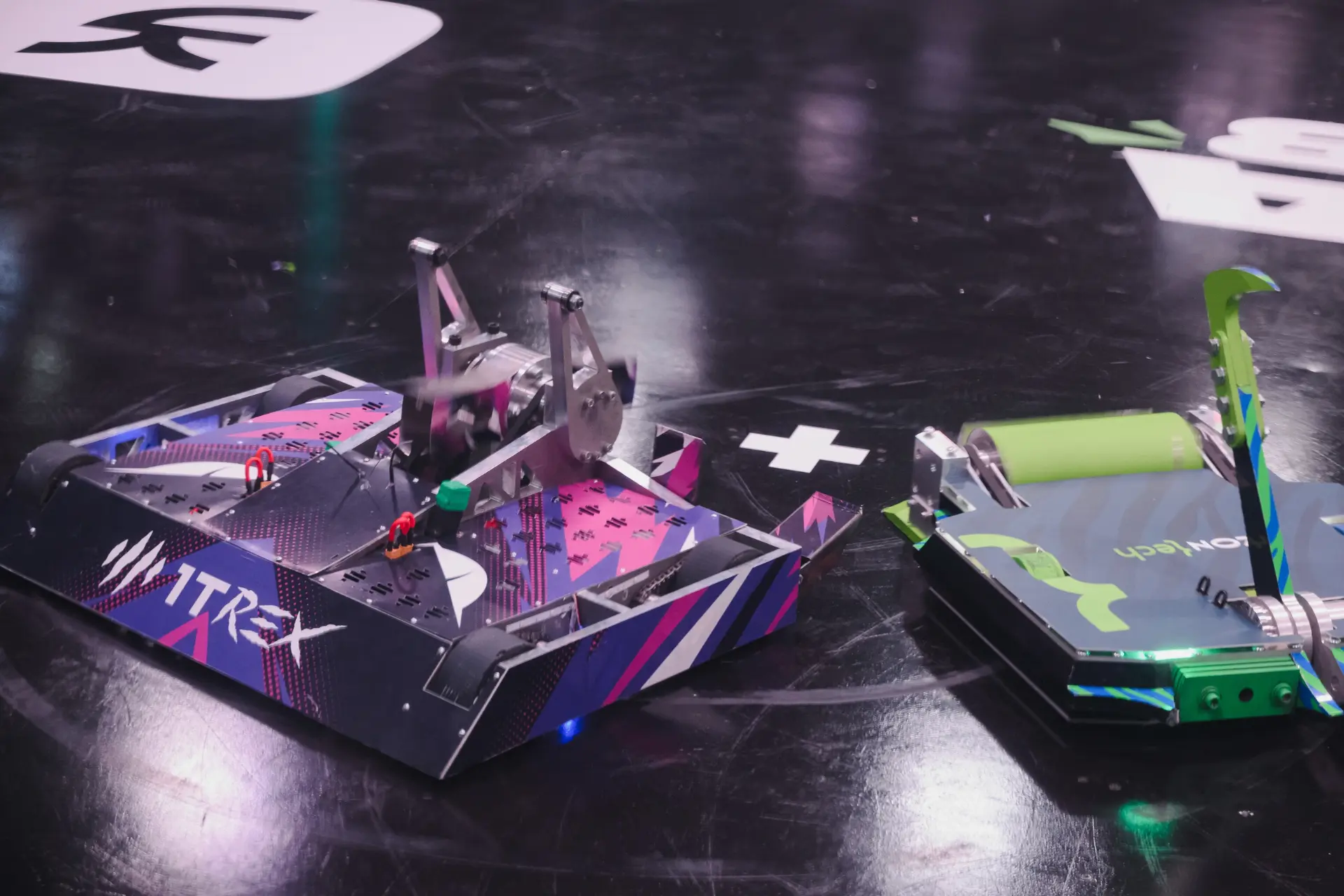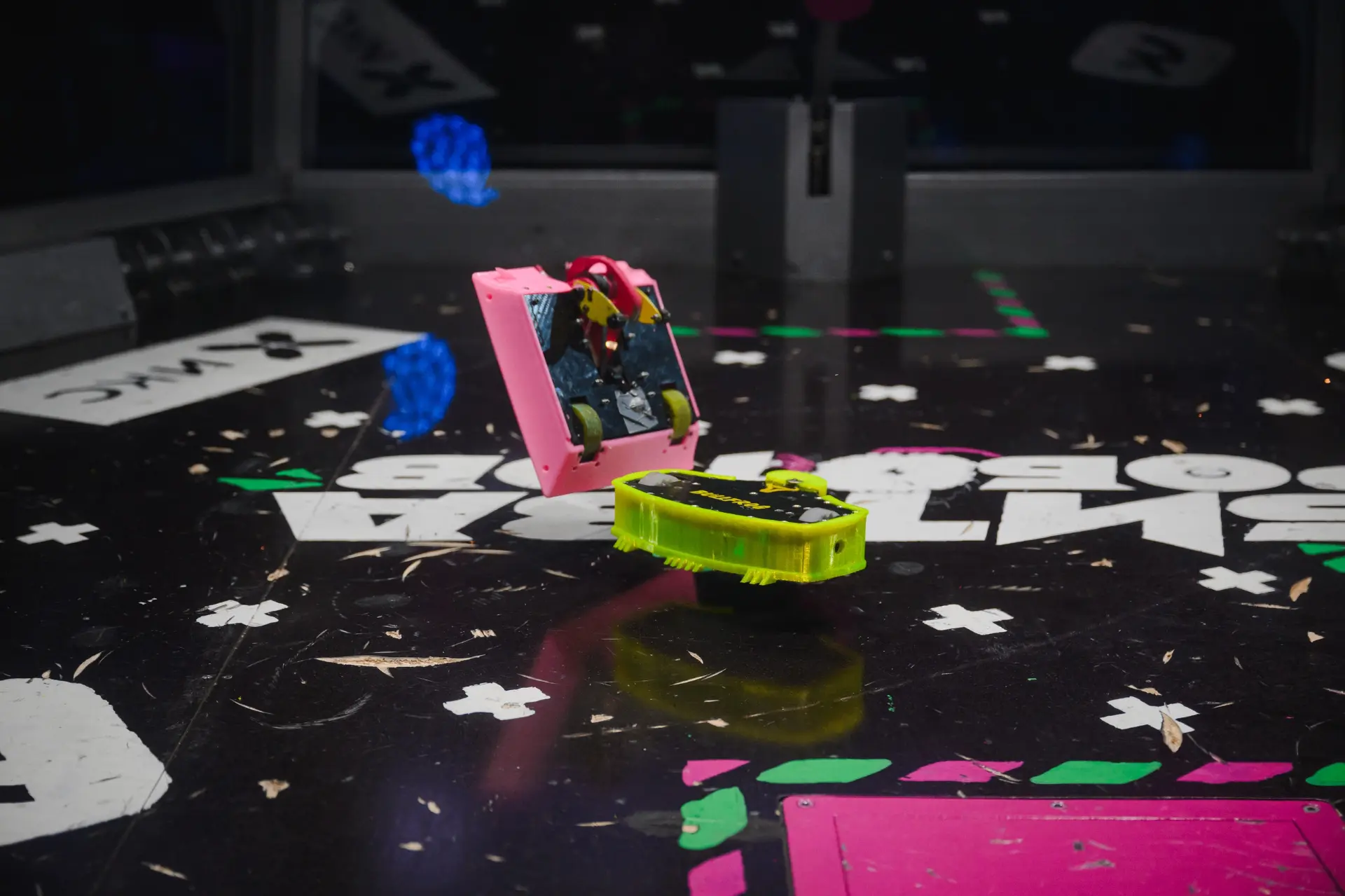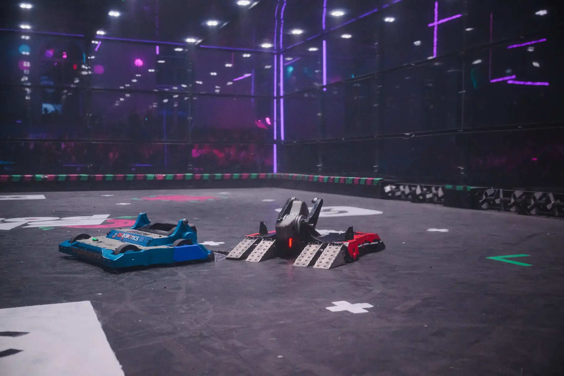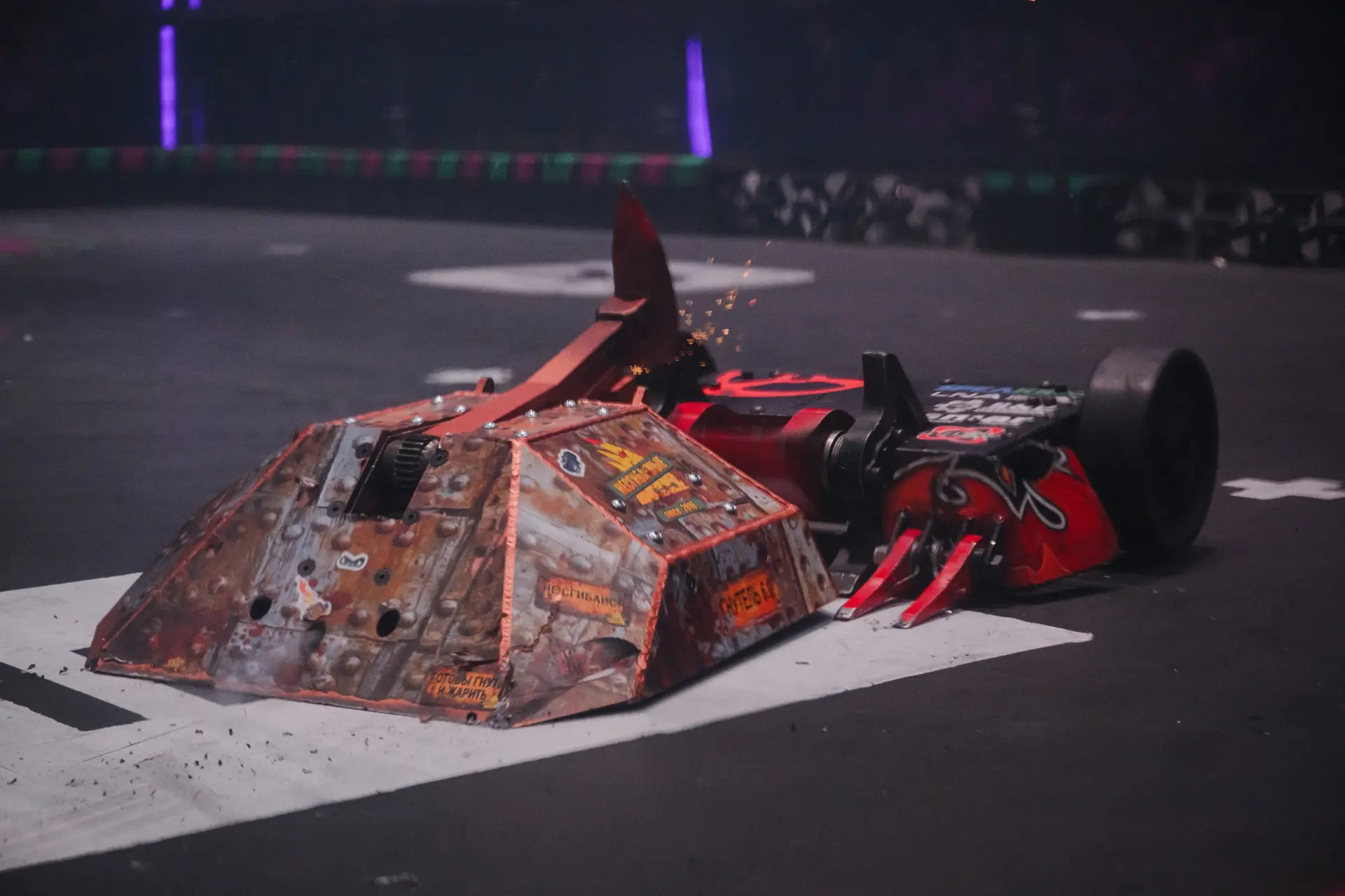 Две сильнейшие команды на ринге — обе активно атаковали, подбрасывали друг друга в воздух, буквально отрывали куски обшивки, но периодически и выжидали.