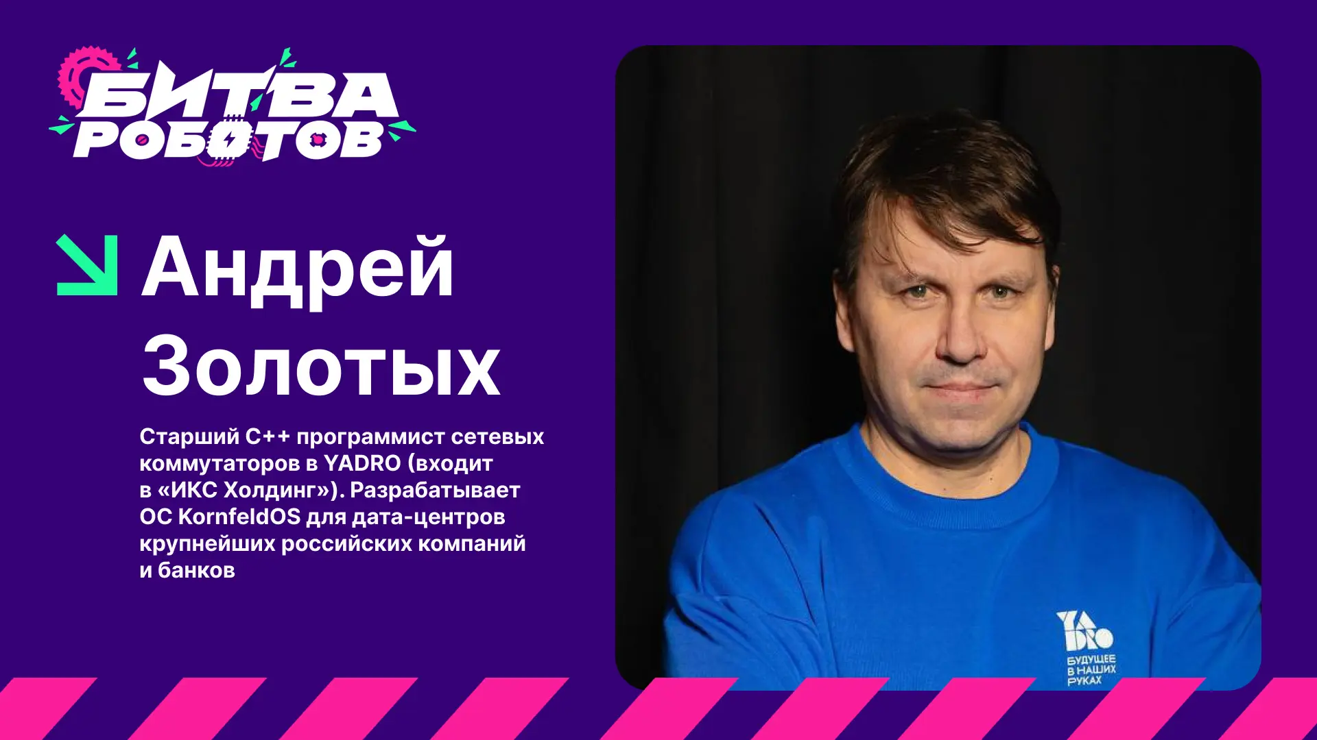 Андрей Золотых, старший C++ программист сетевых коммутаторов в YADRO (входит в «ИКС Холдинг»), разрабатывает ОС KornfeldOS для дата-центров крупнейших российских компаний и банков: