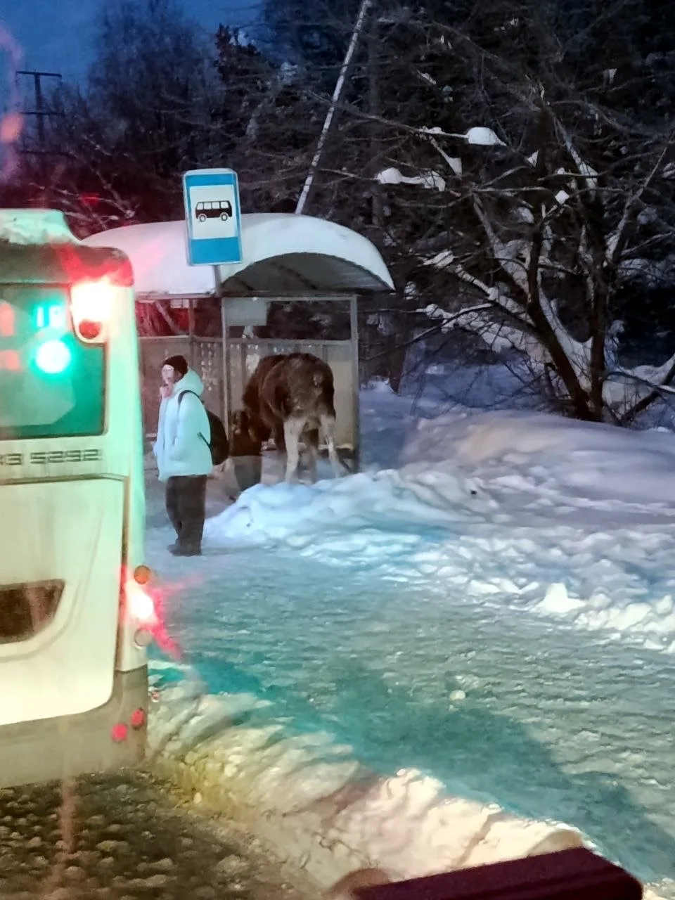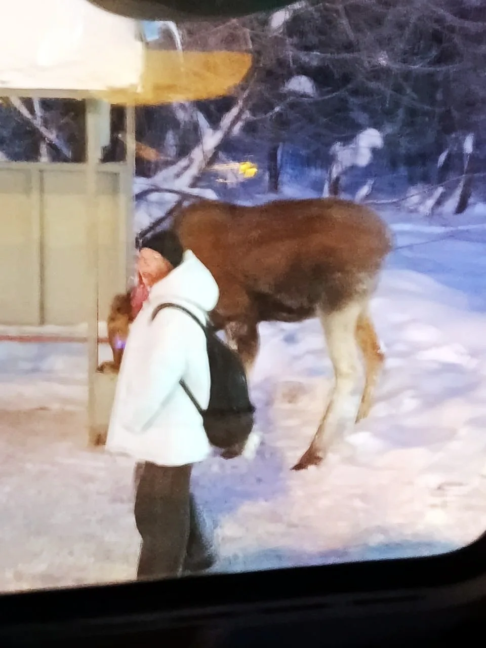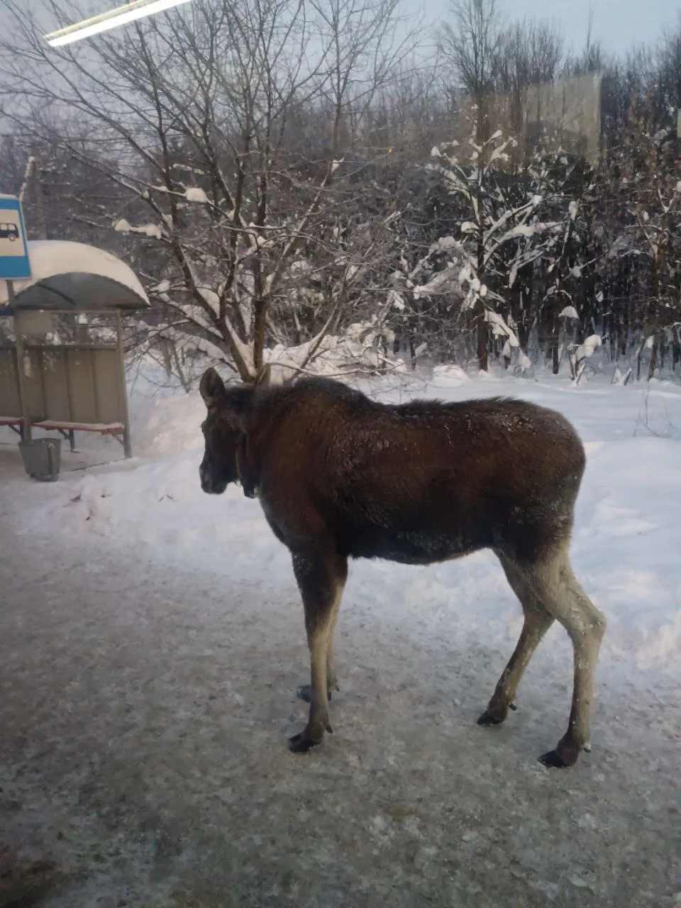 🥰Лосиху, которая сегодня стояла на остановке в Изумрудном, зовут Лукерья и она все-таки не поехала в Москву, а вернулась домой