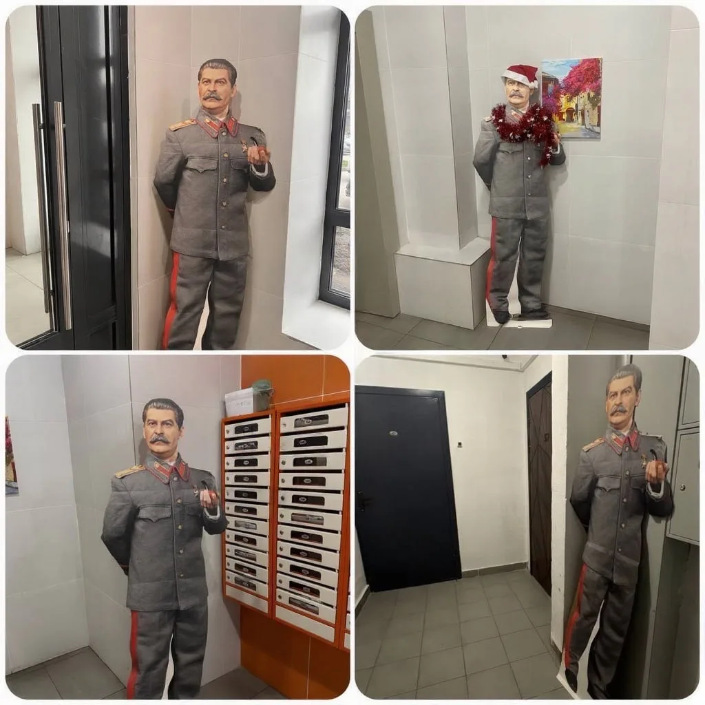 В одном из ЖК Балашихи входящих встречает Сталин. Картонный)