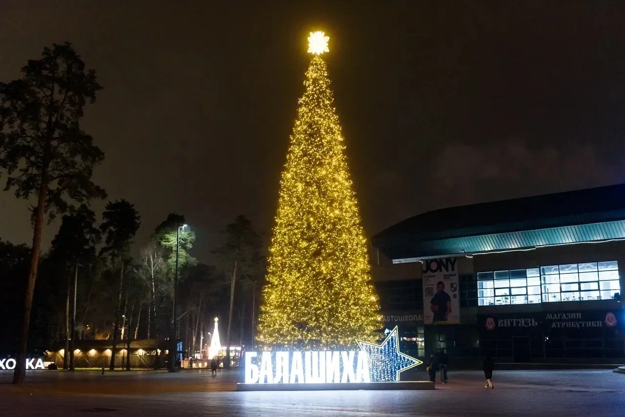 Одной из центральных праздничных локаций традиционно станет площадь у ледового дворца «Арена Балашиха». Здесь для жителей и гостей города установили восемнадцатиметровую новогоднюю ёлку, украшенную яркой гирляндой из тысяч огоньков. Монтаж и украшение дерева заняли около недели. Рядом с ёлкой появилась праздничная надпись «С Новым годом, Балашиха!».