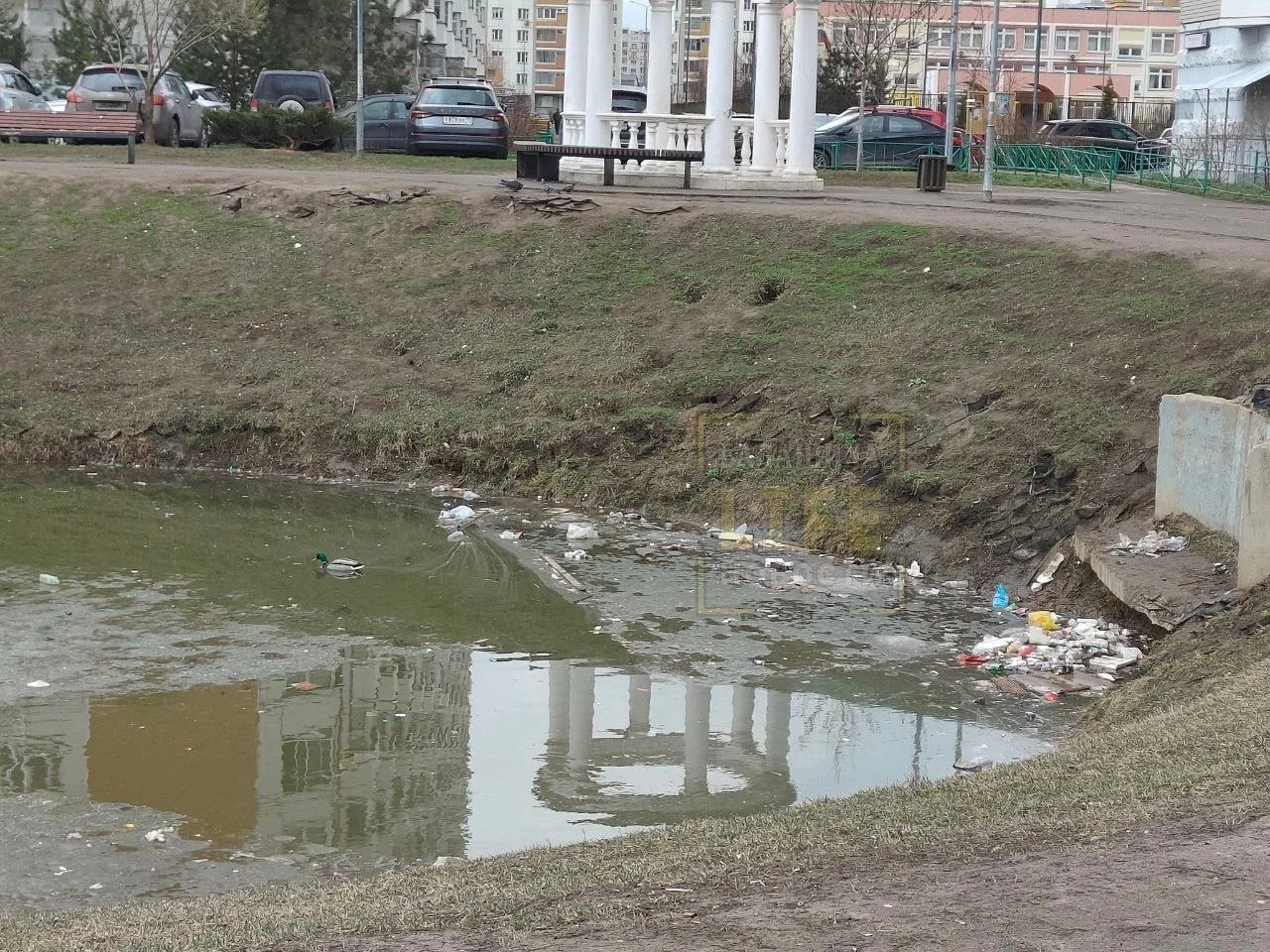 😔 Пруд «Коровка» после зимы стал помойкой.