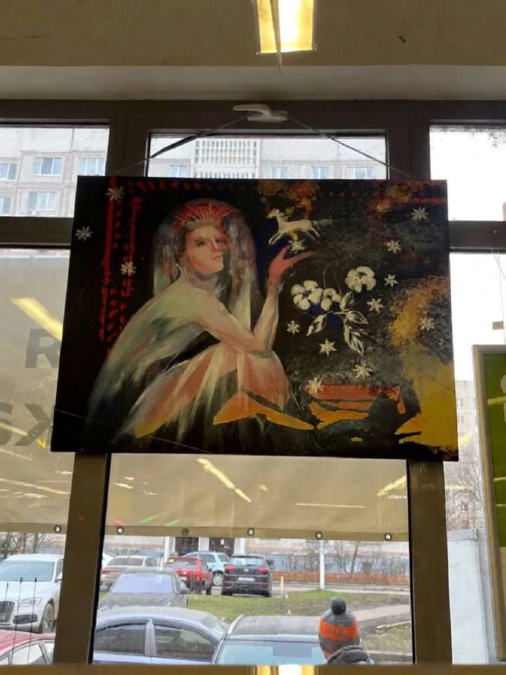 Она сказала, что сама пишет и принесла картину для украшения к праздникам 👍